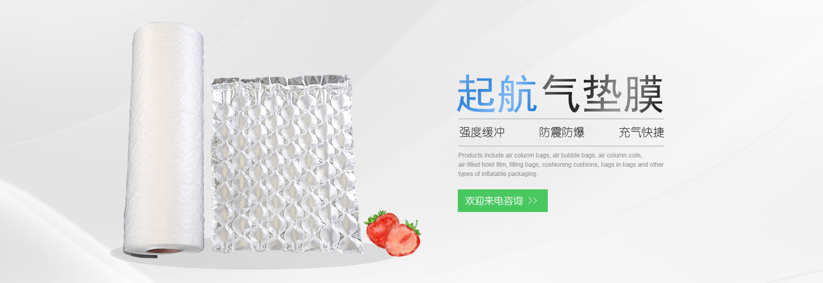 溫州起航包裝科技有限公司產(chǎn)品涉及氣柱袋,氣泡袋,氣柱卷材,充氣葫蘆卷膜,填充袋,緩沖氣墊,袋中袋等多種類型的充氣包裝.電話:13906665582